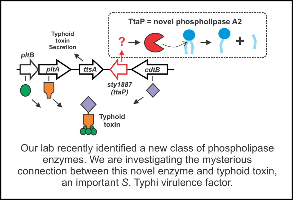 • Gartly SC, Barretto LAF, Côté AMT, Kosowan ZA, Fowler CC. A novel phospholipase A2 is a core component of the typhoid toxin genetic islet. Journal of Biological Chemistry. 2024;300(10):107758. doi:10.1016/J.JBC.2024.107758